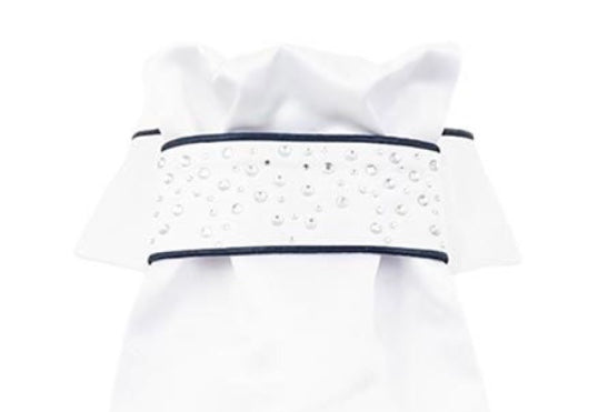 The shiny rhinestones, subtle contrast piping and silver BR embroidery make the stock tie a beautiful, luxurious whole.